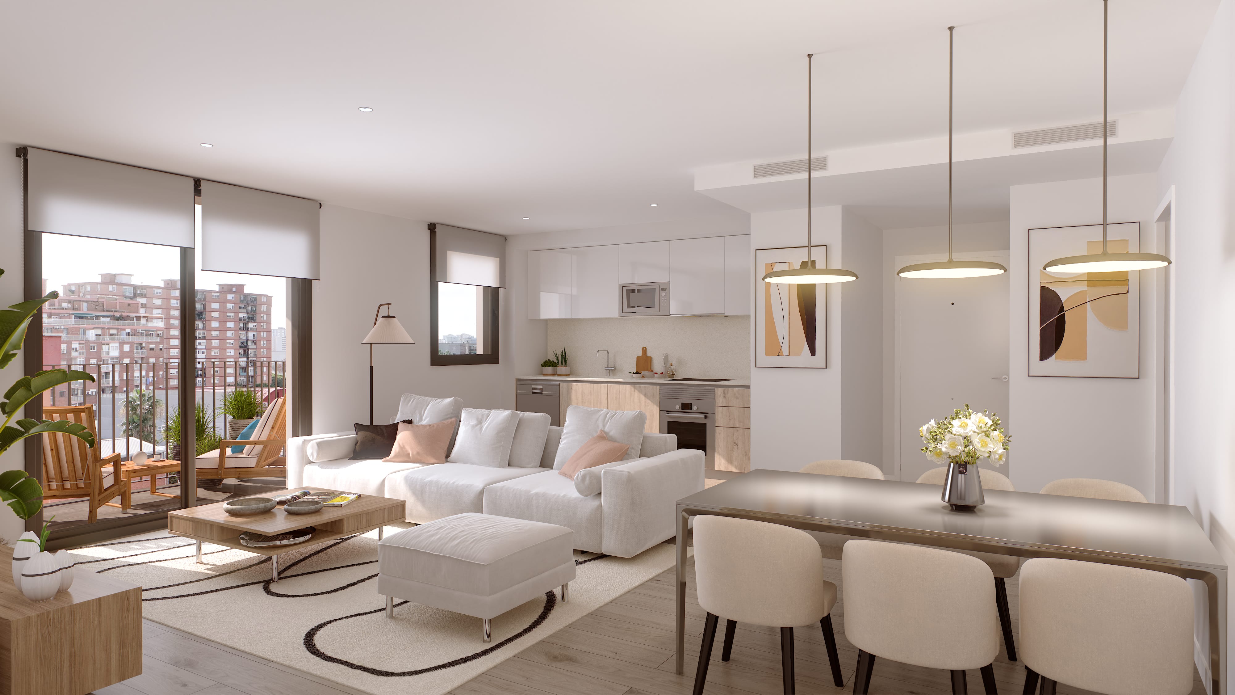 Actualmente, la promoción cuenta con opciones como viviendas de 2 dormitorios desde 289.000 euros o viviendas de 3 dormitorios desde 412.000 euros. Algunas de ellas incluyen terrazas privadas, ideales para disfrutar del clima mediterráneo y ampliar el espacio habitable hacia el exterior.