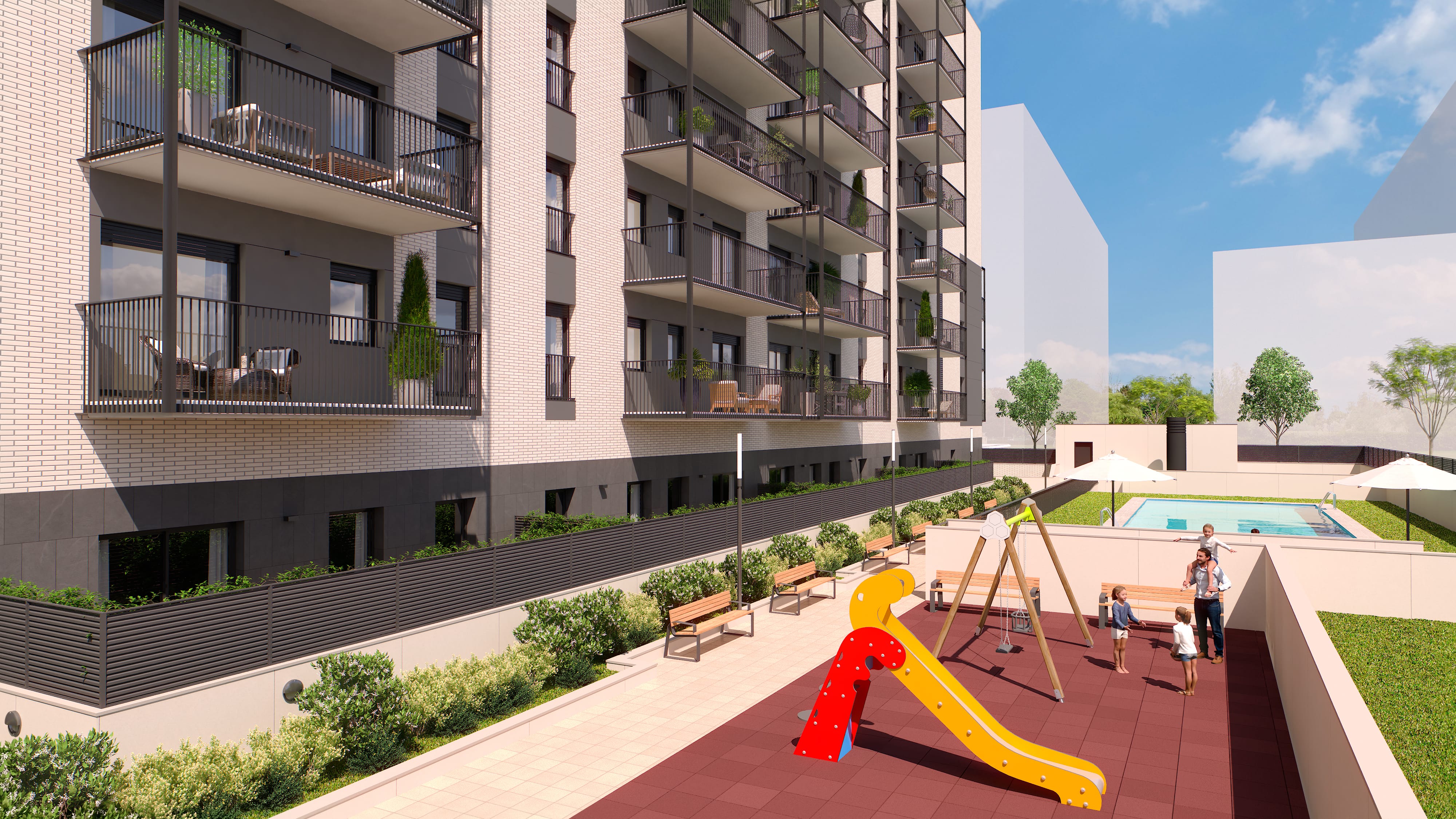Además, en la planta baja disfrutarás de un exclusivo espacio comunitario con piscina privada y zona de juegos infantiles, pensado para compartir momentos únicos en familia. ¿Quieres más información? Llámanos al 93 238 50 77 o ven a conocernos a nuestra oficina de ventas en Rambla Modolell, 34 – Viladecans. ¡No dejes escapar la oportunidad de vivir en un entorno privilegiado y formar parte de este nuevo y vibrante barrio!