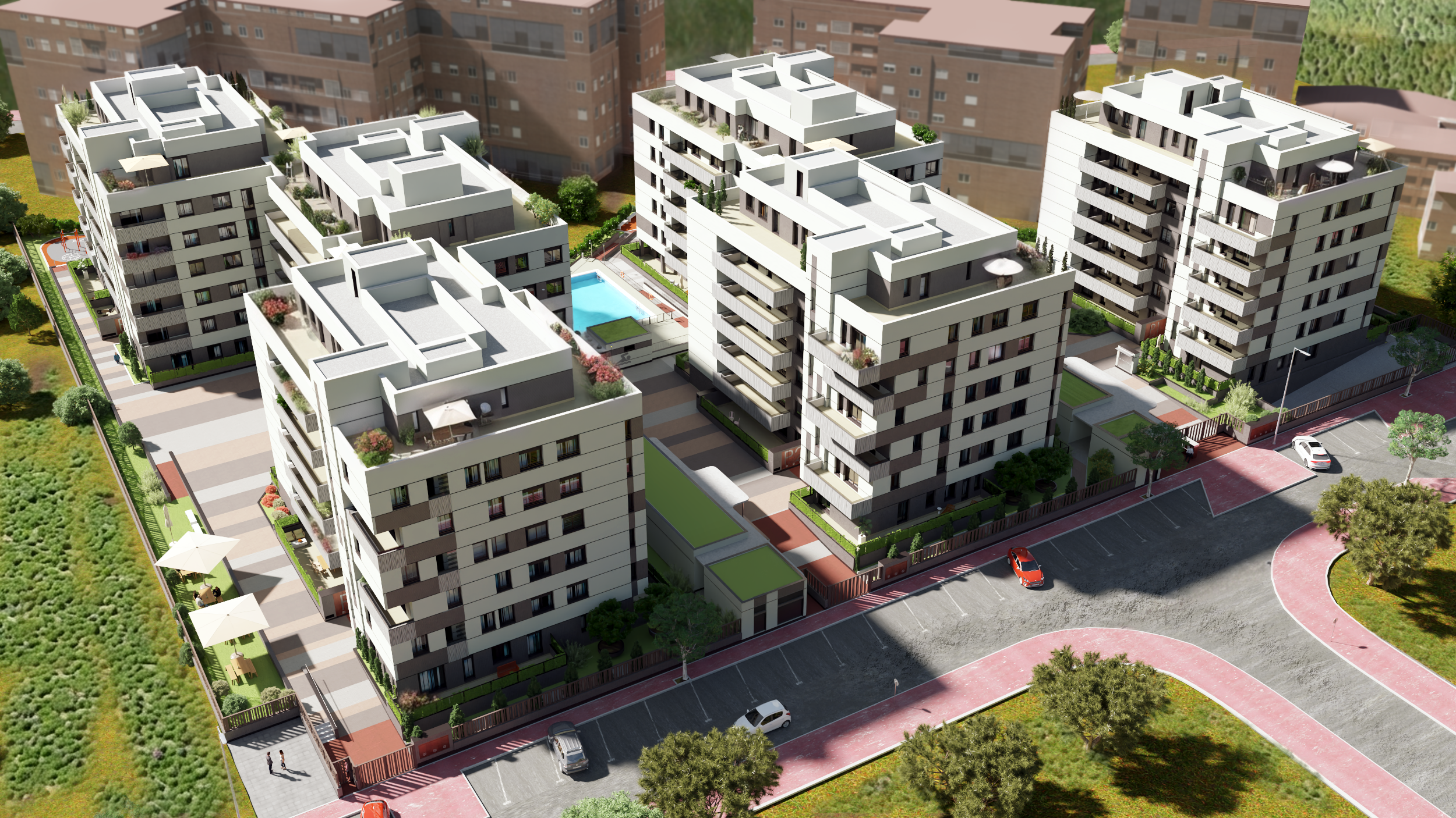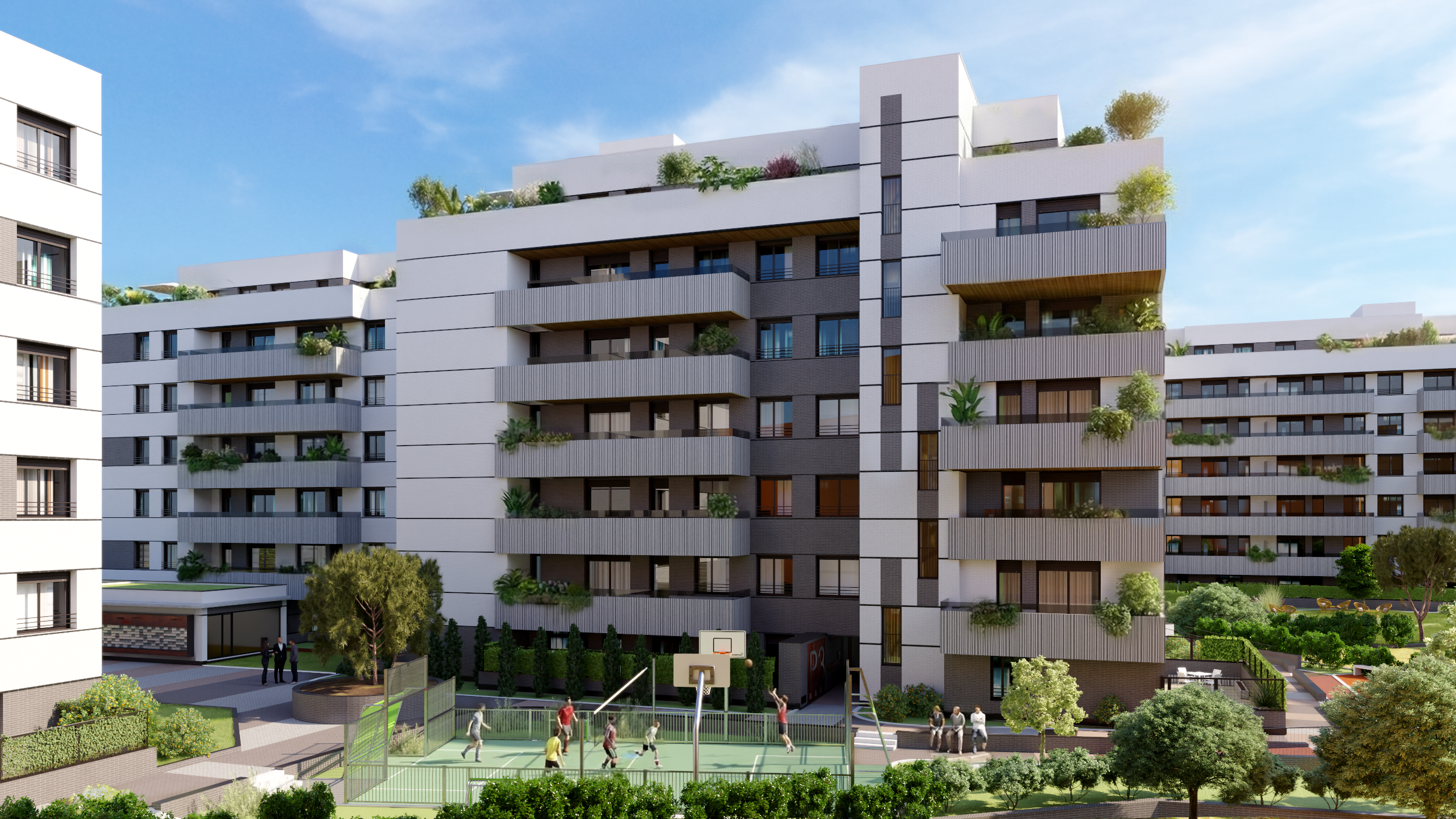 La promoción ofrece pisos, bajos y áticos, todos ellos con terraza, plaza de garaje y trastero incluidos, y completas zonas comunes pensadas para el disfrute diario.